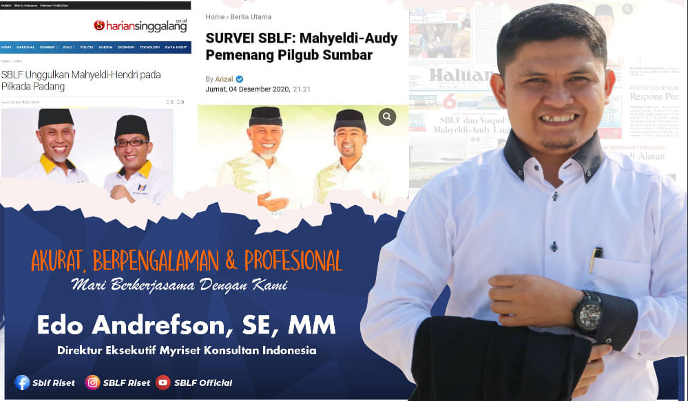 PT. MYRISET KONSULTAN INDONESIABergerak dibidang Lembaga Survei yang profesional dan Akurat di Indonesia. Sudah menghandle survei di Sumbar, Aceh, Riau & Kepri. Siap mendampingi partai politik, para kandidat kepala daerah dan calon legislatif se Indonesia. | |